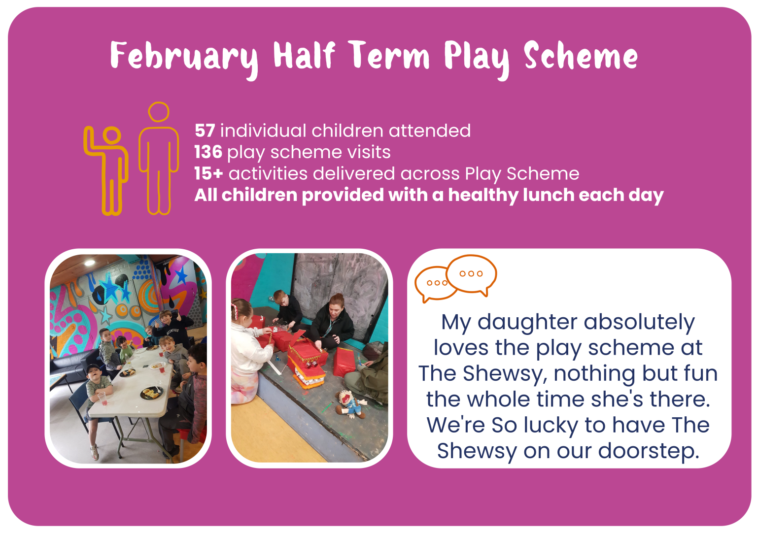 The Shewsy’s February play scheme brought a vibrant mix of culture, creativity and activity to Everton as children spent the week exploring Chinese New Year through play. Children took part in art sessions where they drew Chinese symbols for love, peace and luck, created zodiac‑themed artwork, and made lucky red envelopes and colourful lanterns. A highlight was working together to build large Chinese dragons from recycled materials, sparking imagination and teamwork.